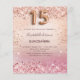Um convite moderno, na moda e glamouroso para a Quinceañera, festa de aniversário 15. Um rosa dourado e um fundo cor-de-rosa, poeira brilhante. O nome é escrito com um moderno e escuro, rosa dourado, escrito com letra de estilo manuscrito. Personalize e adicione os detalhes da sua festa. O número 15 é escrito com uma fonte de estilo balão, script.