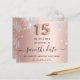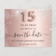 Uma garota e moda Salve o cartão de data para uma Quinceañera, 15 festa de aniversário. Rosa de fundo metálico de aparência falsa, decorado com ouro rosa e poeira falsa prateada. Personalize e adicione uma data e um nome/texto. O texto: Salvar a Data é gravado com um script de estilo com letra de tendência grande com alternâncias. Número 15 com uma fonte no estilo do balão.