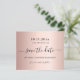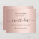 A Save the Date Card for a Quinceañera, 15 festa de aniversário. Um fundo metálico rosa dourado. Personalize e adicione uma data e nome/idade. O texto: Salvar a Data é gravado com um script de estilo com letra de tendência grande com alternâncias.