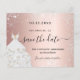Uma garota e moda Salve o cartão de data para uma Quinceañera, 15 festa de aniversário. Um fundo na moda rosa de ouro decorado com falso brilho prateado, faíscas e um vestido. Personalize e adicione uma data e nome/idade. O texto: Salvar a Data é gravado com um script de estilo com letra de tendência grande.