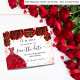Uma garota e moda Salve o cartão de data para uma Quinceañera, 15 festa de aniversário. Rosas vermelhas decoradas em fundo branco, faíscas brilhantes vermelhas e um vestido vermelho. Personalize e adicione uma data e nome/idade. O texto: Salvar a Data é gravado com um script de estilo com letra de tendência grande.