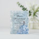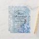 Esta elegante design da Terra Maravilha de inverno azul é uma escolha sofisticada para a festa de Quinceanera da sua filha. Uma princesa é mostrada correndo em direção ao seu castelo cercado por flocos de neve no fundo mal ali. Olhe para o convite da Quinceanera para uma melhor vista do castelo. Todo o texto preto pode ser alterado - que inclui a cor da fonte e da fonte.