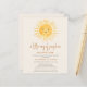 Você está planejando um chá de fraldas temático? Este convite para o chá de fraldas do orçamento apresenta o texto "Um pequeno raio de sol está quase aqui!" com uma linda aquarela sorrindo o sol amarelo num fundo creme. Perfeito para um chá de fraldas neutro em termos de gênero. Facilmente personalizável. Porque nós criamos a nossa trabalho de arte, você não encontrará esta imagem exata de outros designers. Original Watercolor © Michele Davies.