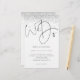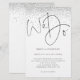 Fazemos Script De Convite de casamento De Largura De Prata. Um tamanho maior de 5,5" x 8,5" a um preço orçamentário, em um STOCK CARD SEMI GLOSS de 110 lb, excelente de convites, aproximadamente na mesma espessura de um cartão postal, ou um estoque LINEN elegante de 110 lb - para um luxo, ligeiramente mais fino, com um valor de excelente. OBSERVE QUE OS ENVELOPES OPCIONAIS SÃO UM POUCO MAIORES EM TAMANHO A 6,75" x 9" aprox. Este alternativo de tamanho de orçamento também está disponível em outras opções de papel. O papel FELT de 100 lbs é colorido por buff, NÃO branco, então adiciona um toque rústico. O estoque de papel MATTE de 80 lb é branco brilhante, para impressão nítida, excelente para seus menus e programas, enquanto o papel SATIN de 80 lb é fino e leve, ideal para gabinetes. Script do conjunto de na moda: Nós fazemos o palco central no topo.O resto do texto que você pode personalizar facilmente. Uma borda cintilante de falso prateado está no topo na frente e atrás. As cores do texto e do plano de fundo podem ser alteradas se você desejar por meio da opção personalizar mais.