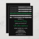 Convites de aposentadoria militar de linha verde fina ou Convites de festas militares que saem. Estes convites de festas do Exército da Linha Verde fina são perfeitos para uma aposentadoria militar, destacamentos militares são enviados, bem-vindos militares para a celebração de casa, graduação militar e soldados indo embora para a festa. Perfeito para todos os militares, militares, proteção de fronteiras, patrulha de fronteira, oficial de conservação, guarda florestal, diretor de jogos, polícia federal. Personalize este convite da bandeira militar com o evento, nome e detalhes da festa dos soldados. Veja nossa coleção para combinar presentes de aposentadoria militar, presentes de graduação militar, favoritos para festas e suprimentos. COPYRIGHT © 2021 Judy Burrows, Black Dog Art - Todos Os Direitos Reservados. Orçamento Retirada Militar Convidar Linha Verde Fina