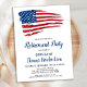 CONVITES DE FESTAS de aposentadoria militar de bandeira americana. Este moderno e moderno azul vermelho, estrelas e listras, convites de festas de bandeira norte-americanos são perfeitos para um partido de aposentadoria militar, soldados indo embora para o partido, destacamentos militares, bem-vindos militares para a celebração do lar, e eventos de formatura militar, assim como aposentadoria de oficiais da polícia estadual, polícia, bombeiros, departamento de bombeiros e veteranos aposentados. Personalize este convite da bandeira americana com seus soldados, policiais ou veteranos, nome e detalhes do partido. Veja nossa coleção para combinar presentes de aposentadoria militar, presentes de graduação militar, favoritos para festas e suprimentos. COPYRIGHT © 2021 Judy Burrows, Black Dog Art - Todos Os Direitos Reservados. Orçamento Retirada Patriótica Convite Bandeira Americana