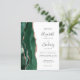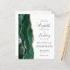 A borda esquerda deste convite de casamento moderno e elegante apresenta uma borda de ágata em aquarela esmeralda verde aparada com brilho de rosa dourada falsa. O texto personalizável combina caligrafia cinza carvão, fontes copperplate e itálico em um fundo branco. O verso fornece espaço para detalhes do casamento em um fundo branco sólido, juntamente com um código QR que os convidados podem escanear para visitar seu site e responder, o que economiza o custo de impressão e envio de cartões de resposta separados. NOTA: Os envelopes não estão incluídos automaticamente com esses convites econômicos, então por favor lembre-se de escolher a opção "envelopes brancos em branco"!