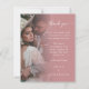 Agradecimento de Casamento com Foto Dusty Rose. Uma alternativa de orçamento menor, 4,5” x 5,6”. Disponível em PAPEL CARTÃO 110 lb SEMI-BRILHANTE, que é a opção padrão (mais grosso para convites), OU PAPEL 80 lb COM ACABAMENTO EM SEDA (ideal para inclusões). Envelopes são opcionais e são ligeiramente maiores que o tamanho do cartão. Basta adicionar Sua Própria Foto a este elegante Agradecimento de Casamento e personalizar as palavras. Uma camada de gradiente de opacidade Dusty Rose é colocada sobre a sua imagem à direita e um Dusty Rose coordenado está do outro lado.