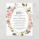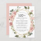 Bonito rosas cor-de-rosa poeirentas criam uma fronteira floral moderna neste 100º convite de aniversário.
