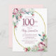 O Convite de aniversário Elegante 100º modelo apresenta uma estrutura dourada e dois arranjos de rosas cor-de-rosa esbranquiçadas. Todo o texto é editável.