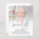 Uma alternativa de orçamento com bom custo-benefício em um tamanho menor 4,5 x 5,6” semi-brilho 110lbs de peso, que é de espessura semelhante a um cartão postal (no entanto, não é adequado para uso como cartão postal). POR FAVOR, OBSERVE que há UM convite por folha. Convite de Aniversário de 70 anos com Foto e Letra. Um design minimalista para a sua festa de aniversário de setenta anos, com um conjunto de letras elegante para o cabeçalho. Basta substituir a foto de amostra pela sua favorita e personalizar o restante do texto conforme necessário.