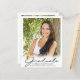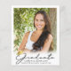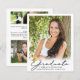 Anuncie a conquista do seu graduado do ensino médio ou faculdade com este anúncio alternativo econômico impresso em papel leve de 4,5x5,6 polegadas em vez de cartão e apresentando 5 fotos (1 na frente e 4 no verso) e uma tipografia moderna e elegante com título GRADUADO em letra manuscrita em preto com um sutil acento de gorro ou boina de formatura em dourado metálico foil. O verso é projetado para incluir informações sobre as conquistas do graduado, atividades e planos futuros, conforme desejado. Ideal para orçamentos conservadores e/ou entrega manual. ASSISTÊNCIA: Para obter ajuda com modificação de design ou personalização, alteração de cor ou transferência do design para outro produto, entre em contato com o designer ANTES DE COMPRAR por meio da guia de MENSAGEM do Zazzle Chat ou envie um e-mail para makeitaboutyoustore@gmail.com.