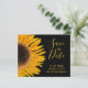 País rústico do orçamento elegante girassol amarelo de casamento no país negro de fundo Salve o anúncio de data em cartões planos. Bonita impressão de flor simples. Imagem copyright Marg Seregelyi Fotografia.