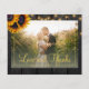 Girassóis rústicos e luzes de corda em madeira de celeiro marrom escuro colagem de 5 fotos em grade cartão de agradecimento de casamento econômico e elegante BUDGET com tipografia dourada sofisticada. +++++++++ Personalize com seus nomes, foto e texto! ++++++++++ Adequado para casamentos temáticos florais de verão ou outono / casamentos rústicos no jardério ou quintal. ++++++++++++++++++++++ POR FAVOR LEIA ISSO ANTES DE COMPRAR! Este é um cartão de casamento econômico impresso em uma folha de papel (cada folha tem um cartão). ++++ Para a melhor relação preço qualidade, nosso conselho é escolher o tipo de papel Semi-Brilho (é grosso o suficiente para ser usado em papelaria) ++++ Se você precisar de envelopes, escolha a OPÇÃO DE ENVELOPE. +++ Verifique todas as informações e ortografia do seu texto porque você receberá exatamente o que vê - ninguém mais verificará nada antes da impressão. ++++ Este cartão é projetado para o tamanho 4,5 "x 5,6". No caso de você escolher outro tamanho do cartão e o texto ultrapassar a página, tudo precis