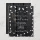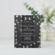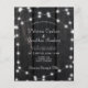 Convite para casamento de barato no orçamento russo do país com cordas de luzes cintilantes em um fundo de madeira de celeiro escuro e um roteiro de caligrafia, ++++++++++++++++ Adequado para verão, outono ou jardim de inverno, quintal, ao ar livre, celeiro, casamentos de fazenda.