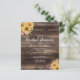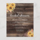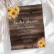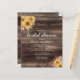 Este chá de panela rústico apresenta buquês de girassol de cor amarela em um fundo de madeira marrom, com a palavra "chá de panela" em escrita manual casual. Personalize o resto do texto com o nome da noiva-a-ser, o local do chá e outros detalhes. O verso apresenta um grande buquê de girassol sobre o mesmo fundo de madeira.