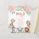 Um animal selvagem de safari de orçamento, um convite para primeiro aniversario floral.