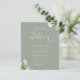 Este elegante convite de casamento verde sage econômico com detalhes florais pode ser personalizado com os detalhes da sua celebração em tipografia sofisticada. Projetado por Thisisnotme©