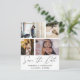 Elegante salve nosso anúncio de data. Este modelo apresenta espaço para 4 das suas fotos de casais favoritas em branco com legal caligrafia escrita à mão em cinzas escuras. Fácil de editar com seus próprios detalhes exclusivos.