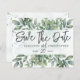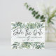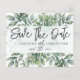Esse moderno e elegante salvamento da data design tem um tema botânico, que inclui eucalipto e folhagem em aquarela com tipografia elegante escrita à mão. Fácil de personalizar com suas próprias informações.