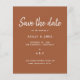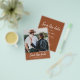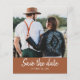 Foto de script Na moda salvará o folheto de data com seus nomes, data de casamento, local e site de casamento em caligrafia branca manuscrita e tipografia moderna em um fundo de terracota. Basta adicionar seus detalhes pessoais e sua foto favorita! Desenvolvido exclusivamente para você pelo Happy Dolphin Studio. Se precisar de ajuda ou produtos correspondentes, entre em contato conosco através do bate-papo da loja. Estamos felizes em ajudá-lo a fazer seu casamento o dia mais bonito!