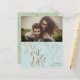 Este cartão de casamento Salvar a Data combina elegância, romance e sofisticação moderna. Apresentando sua foto favorita de casais com folhagem delicada e romântica e caligrafia falsa em ouro, acrescentando um toque de luxo e aprimorando a estética geral. O cartão dá o tom de uma celebração memorável e alegre, convidando convidados a compartilhar a história de amor do casal e marcando o início de sua jornada como um casal casado. Personalize com seus próprios detalhes. Consulte outros itens nesta coleção exclusiva e original.