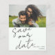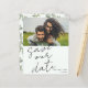 Este anúncio elegante "salve a data" é perfeito para pôr em marcha os planos de casamento. Apresenta um modelo de fotografia e uma grande tipografia a preto num fundo verde de sábio. Na parte de trás do modelo está um padrão de eucalipto de aquarela branca. Personalize com seus próprios detalhes. Consulte outros itens nesta coleção exclusiva e original.