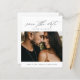 Um cartão de orçamento romântico e simples para salvar a data com bela caligrafia, foto horizontal e texto mínimo na frente. O verso tem uma foto vertical com site de casamento. Clique no botão de edição para personalizar este design.