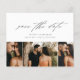 Um cartão de save the date de orçamento mínimo com bela caligrafia em script, 3 fotos e texto mínimo na frente. A parte traseira inclui o site do casamento para mais informações. Clique no botão editar para personalizar este design.