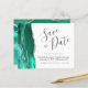 Este elegante orçamento salva o cartão de data apresenta uma aquarela verde-marinha com borda agitada com falso brilho prateado. O texto personalizável combina o script de escrita manual de cinzas de carvão, o copperplate e as fontes itálicas em um fundo branco. O verso apresenta um design verde-marinho e agata-prateado correspondentes.