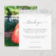 Foto Da Quinceanera Do Silver De Orçamento Obrigado. Um alternativo de 4,5 pol x 5,6 pol com preço inferior. Disponível em um STOCK DE CARTÃO SEMI-GLOSS 110 lb, que é a opção padrão (mais espesso para convites), OU um STOCK de PAPEL THINNER FINISH 80 lb FINISH (ideal para gabinetes). Os envelopes são um extra opcional e são ligeiramente maiores que o tamanho da placa. Depois de sua festa, diga obrigados com um toque de brilho! Uma falsa borda da relva em prata está no topo, e Obrigado está em um roteiro elegante. Personalize facilmente o texto para seus próprios detalhes. Na parte de trás troque sua foto favorita do seu partido de orientação para retratos.