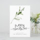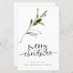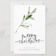 Simples Contemporâneo Deixa Um Cartão De Férias De Natal Feliz. Um cartão FLAT de 5,5 pol x 8,5 pol. com preço orçamentário para suas saudações festivas em um estoque de cartão SEMI GLOSS 110 lb brilhante (semelhante à espessura de um cartão postal). OBSERVE: O envelope fornecido com este cartão é maior que o cartão de 6,75 pol x 9 pol. Estilo moderno minimalista com muito espaço em branco, Feliz Natal está em um roteiro elegante em preto e o resto do texto que você pode facilmente personalizar. Um galho elegante de folhagem verde corre para cima, da esquerda. As cores do texto e do plano de fundo podem ser alteradas se você desejar por meio da opção personalizar mais.