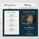 Este é um dos meus modelos mais complexos. Fácil de usar, mas demorará um pouco. Todo o texto é ajustável. Uma opção fotográfica. Programa simples e elegante para uma celebração do serviço de vida. Seção do obituário e espaço de texto extra na parte traseira para poemas, obrigados ou aspas de bíblia. Minha foto de marcador é meu gato Taffy. Obrigados Taffy.