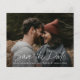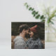 Este Moderno script Foto Casamento Salvar a Data apresenta um design elegante e minimalista com tipografia branca de data de salvamento manuscrita em uma foto de sangria total. Detalhes personalizáveis e foto na frente. O verso oferece uma mensagem pessoal. Clique no botão Editar para personalizar este design.