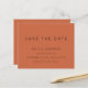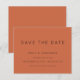 A Simples Tipografia Terracotta Salva A Data. Um alternativo de 4,5 pol x 5,6 pol com preço inferior. Disponível em um STOCK DE CARTÃO SEMI-GLOSS 110 lb, que é a opção padrão (mais espesso para convites), OU um STOCK de PAPEL THINNER FINISH 80 lb FINISH (ideal para gabinetes). Os envelopes são um extra opcional e são ligeiramente maiores que o tamanho da placa. Simples elegância com Salvar a Data em um script de conjunto moderno.O resto do texto que você pode personalizar facilmente.Mostrado aqui em preto no terracotta, entretanto, as cores de texto e fundo podem ser alteradas se você desejar por meio da opção personalizar mais.