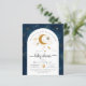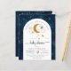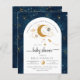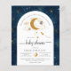 Dourada lua de glíbulas, estrelas e planetas de aquarelas neste elegante modelo de convite para chás neutro por gênero.