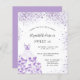 Um convite moderno, na moda e glamouroso para uma doce festa de aniversário 16, 16. Na frente: Um fundo branco com violeta, brilhos lilás, um vestido violeta. O nome é escrito com um moderno estilo escrito à mão. Personalize e adicione os detalhes da sua festa.