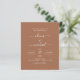 Budget Terracotta Boho Brown Wedding Modern Simple Primavera ou Summer Photo on Back Wedding Invices - inclui uma bela e elegante tipografia de roteiro com uma moderna cor simples e clássica para a celebração especial do Dia do Casamento.
