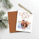 Orçamento Moderno Terracotta Caramel Brown Cartões com fotos Felizes de Natal Feriados com uma tipografia de tendências e um tom de terra de na moda no inverno mais bronzeado. **O nosso documento sobre o ORÇAMENTO é mais pequeno e delicado, mas ainda é bonito!** Para uma comparação de tipos de papel, veja o nosso vídeo aqui: https://youtu.be/G0F9Am5HPD4 Se precisar de assistência ou de itens correspondentes, contacte-nos em cedarandstring@gmail.com.