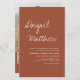 Orçamento Personalize este Boho Simples Elegante Terracotta Burnt Orange e White Na moda Convite com sua mensagem e detalhes com uma foto elegante no verso com RSVP de Código QR. Este convite minimalista inclui a tipografia da escrita à mão na moda com uma cor moderna para a celebração especial do dia do casamento.