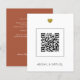 Este convite de folha de papel é o nosso menor preço neste design. O jornal não é tão grosso quanto um típico convite para o casamento, este é um 12,5, e um convite formal é 17,5. Essa diferença mantém seu custo baixo, mas você precisa estar ciente disso antes de fazer o pedido. Se quiser um cartão mais grosso, compre nosso outro exemplo em nossa coleção. Esta folha tem uma frente branca e um fundo de terracota no verso. Na frente, você listará o código QR do seu site de casamento onde seus convidados podem RSVP, assim como seus nomes. Ao contrário, você adicionará uma mensagem pessoal aos seus convidados. Você pode colocar seus primeiros nomes ou, se preferir, pode excluir e assinar em casa. Qualquer pergunta não hesita em me contactar.