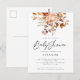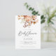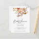 Orçamento Terracotta Florals Convite para Chá de fraldas. Lindas flores de outono e gramíneas de pampas para seu chá neutro em gênero com um roteiro informal definido para o Chá de fraldas e o resto do texto que você pode facilmente personalizar.