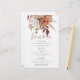 Orçamento Terracotta Florals Rustic Wedding Menu. Um excelente de 5,5" x 8,5" em uma gama de opções de papel. Uma tipografia informal para o título principal Menu que complementa o resto do texto que você pode facilmente personalizar, com lindas flores coloridas do outono e gramíneas de pampas no topo.