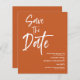 O Terracotta de Orçamento Salve o Cartão de Data é uma opção quente e na moda para casais que querem elegância sem gastos excessivos. Apresentando tons de terracota terrestre com tipografia limpa e minimalista, cria uma estética moderna, mas eterno. Perfeito para rústico, boho ou casamentos outono, esta design estabelece um tom acolhedor e romântico. O seu formato favorável ao orçamento torna-o acessível, ao mesmo tempo que oferece uma aparência elegante e de alta qualidade. Impresso no estoque de cartão de qualidade, ele fornece durabilidade e encanto sem comprometer o estilo. Uma maneira simples e impactante de anunciar sua data de casamento enquanto se mantém dentro do orçamento.
