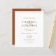 Orçamento Moderno Simplesmente Texto Terracotta Convites De Casamento. A cor e o tipo da fonte podem ser alterados através do menu de edição. Você também pode alterar as cores do texto e do plano de fundo em ambos os lados, se desejar. Um valor para o alternativo menor de 4,5 x 5,6 polegadas é usado como padrão para a opção de semigloscópio, que é recomendada para convites e é de espessura semelhante a um cartão postal. A opção satin é muito mais fina.
