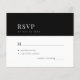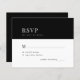 Um cartão Rsvp de convite de casamento clássico, preto e branco, de tipografia ousada e elegante, com um visual elegante e ensombrado. +++++ Adequado para todas as cerimônias e recepções de casamento formais de estação. +++++++++ LEIA ISTO ANTES DE COMPRAR! Este é um cartão de casamento de barato orçamentário impresso em uma folha de papel (cada folha tem um cartão). +++ Para obter a melhor qualidade de preço, nosso conselho é escolher o tipo de papel Semi-Gloss (é espesso o suficiente para ser usado para papelaria) +++ Se você precisar de envelopes, escolha a OPÇÃO ENVELOPE. ++ Verifique duas vezes todas as informações e a ortografia do seu texto porque você receberá exatamente o que você vê - ninguém mais verificará nada antes de imprimir. +++ Esta placa foi projetada para o tamanho de 4,5" x 5,6". Caso você escolha outro tamanho do cartão e o texto saia da página, tudo precisa ser corrigido antes de adicionar o produto ao carrinho. Peça ajuda ao Serviço de Design ao Vivo.