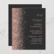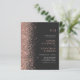 Orçamento Tudo em Um Monograma Rosa de Literatura Dourada no Convite de Casamento de Carvão... Nosso convite de casamento "All in One" rosa de brilho barato apresenta uma borda brilhante de ouro rosa em um rico fundo de carvão ao lado da noiva e do monograma e texto de convite do noivo. A parte traseira do cartão contém todos os detalhes que você normalmente veria em cartas separadas dentro do pacote de casamento. Este convite de casamento, no estilo moderno, foi concebido para ser elegante e consciente do orçamento... para não falar em poupar tempo. No verso há também um exemplo de gráfico de código QR que você pode substituir por seu próprio código ***certo no modelo de personalização*** digitando o URL do seu site de casamento. Todo texto de exemplo pode ser facilmente revisado com suas próprias informações sobre o modelo de personalização.