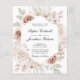 Orçamento Tudo em Um Boho Blush Rosas Rosa Secas Palma Deixa Convite De Casamento... Nosso convite para o casamento floral "All in One", barato, apresenta uma série de rosas rosa-pinceladas, pinceladas, eucaliptos e folhas de palma secas dispostas em volta de um quadro hexagonal em um fundo branco quente. A parte de trás do convite contém todos os detalhes que você normalmente veria em cartas separadas dentro do pacote de casamento. Este convite de casamento, no estilo moderno, foi concebido para ser elegante e consciente do orçamento... para não falar em poupar tempo. Na parte de trás, há também um modelo de gráfico de código QR que você pode substituir por seu próprio código (ou excluir se você não planeja usar um). Todo texto de exemplo pode ser facilmente revisado com suas próprias informações sobre o modelo de personalização.