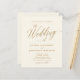 Orçamento tudo em um convite para casamentos de caligrafia Dourada elegante com detalhes de trás... Nosso convite de casamento exclusivo "Tudo em Um" de ouro e creme apresenta uma caligrafia elegante de escrita manual de ouro combinada com texto de serifa para um convite de casamento clássico e elegante em um fundo de creme delicado. A parte de trás do convite contém todos os DETAILS que você normalmente veria em cartões separados no pacote de casamento, incluindo tempo e local de recepção, opções de alojamento, site de casamento, RSVP e informações de registro de presentes. Este convite de casamento ao estilo moderno foi concebido para ser elegante e consciente do orçamento... para não mencionar a poupança de tempo. Na parte de trás, há também um modelo de gráfico de código QR que você pode substituir por seu próprio código (ou excluir se você não planeja usar um). Todo texto de exemplo (além dos elementos gráficos) pode ser facilmente revisado com suas próprias informações sobre o modelo de personalização.