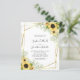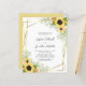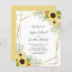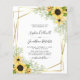 Orçamento Tudo em Um Convite de Casamento de Frame Geométrico Dourado Foliage Foliage... Nosso convite para casamento floral e verde para o barato "Todos em Um" apresenta um quadro geométrico dourado embelezado com buquês de girassóis amarelos brilhantes e delicada folhagem verde que faz fronteira com seu texto personalizado de convite para o casamento. A parte de trás do convite contém todos os detalhes que você normalmente veria em cartas separadas no pacote de casamento. Este convite de casamento ao estilo moderno foi concebido para ser elegante e consciente do orçamento... para não mencionar a poupança de tempo. Na parte de trás, há também um modelo de gráfico de código QR que você pode substituir por seu próprio código (ou excluir se você não planeja usar um). Todo texto de exemplo pode ser facilmente revisado com suas próprias informações sobre o modelo de personalização.